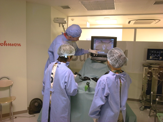 長男の今回の第一番目のアクティビティは腹腔鏡下手術。このシュミレーターはたぶん医療用の本物。プログラムは一番容易なものですが。