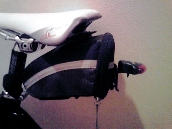 今回はダブルボトルで参加したためサドルバッグを使用。サドルバッグにテールライトをつけたのですが、こんなふう。