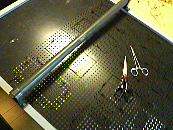 ↓修復中です。ゴム節約のために、手術用モスキートペアン(廃品利用)が大活躍。