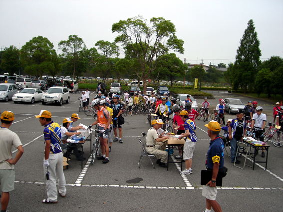 すでにこのときに参加者もちらほらと。みなさん気合はいってますね。自分は実家に泊まって参加、朝3:30に親におこされました。3:50に目覚ましをかけて、4:10出発という無謀な計画でしたが、余裕をもって出発できました。コンビニで山のように朝食を買い込んで、完食。