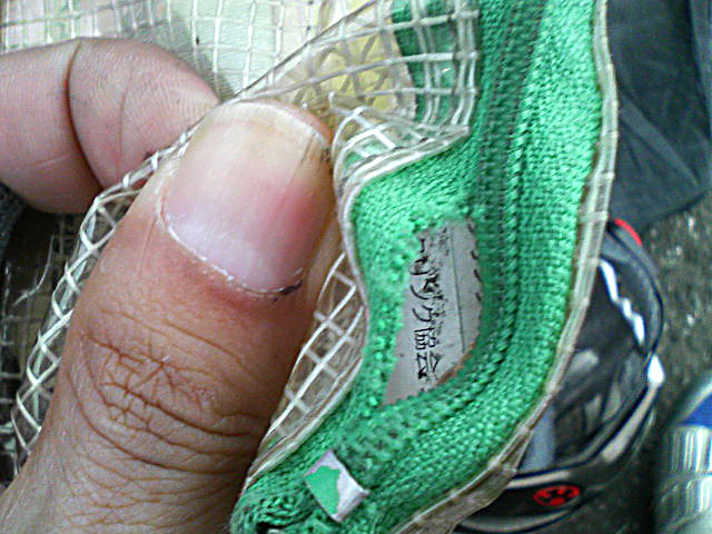 で、オークションで落札。ゴムのびてますよ、というものを購入したので、自分でゴムを交換。本当はシリコンゴムがよさそうなんだけど、近場で売っていなかったので、髪どめ用の黒ゴム。安い、10m190円X3購入。