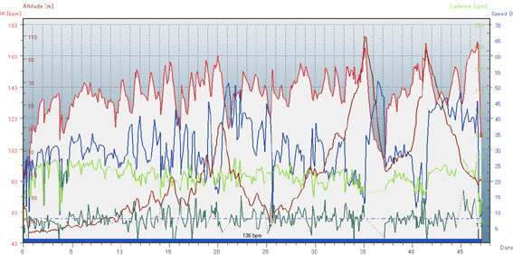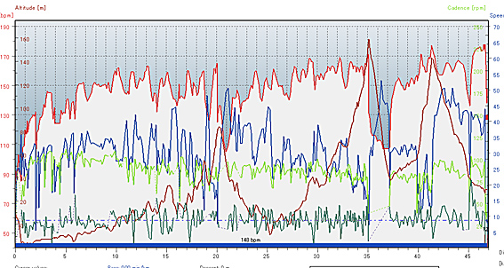 47.2£ë£í¡¢1»þ´Ö38ʬ¡¢Ê¿¶Ñ28.2km/h¡£¥¿¥¤¥à¤¤¤Þ¤¤¤Á¡£¤Ê¤¼¤«¿´Çï¿ô¤â¾å¤²¤é¤ì¤Ê¤¤¤·¡¢µÓ¤â½Å¤¯¡£
