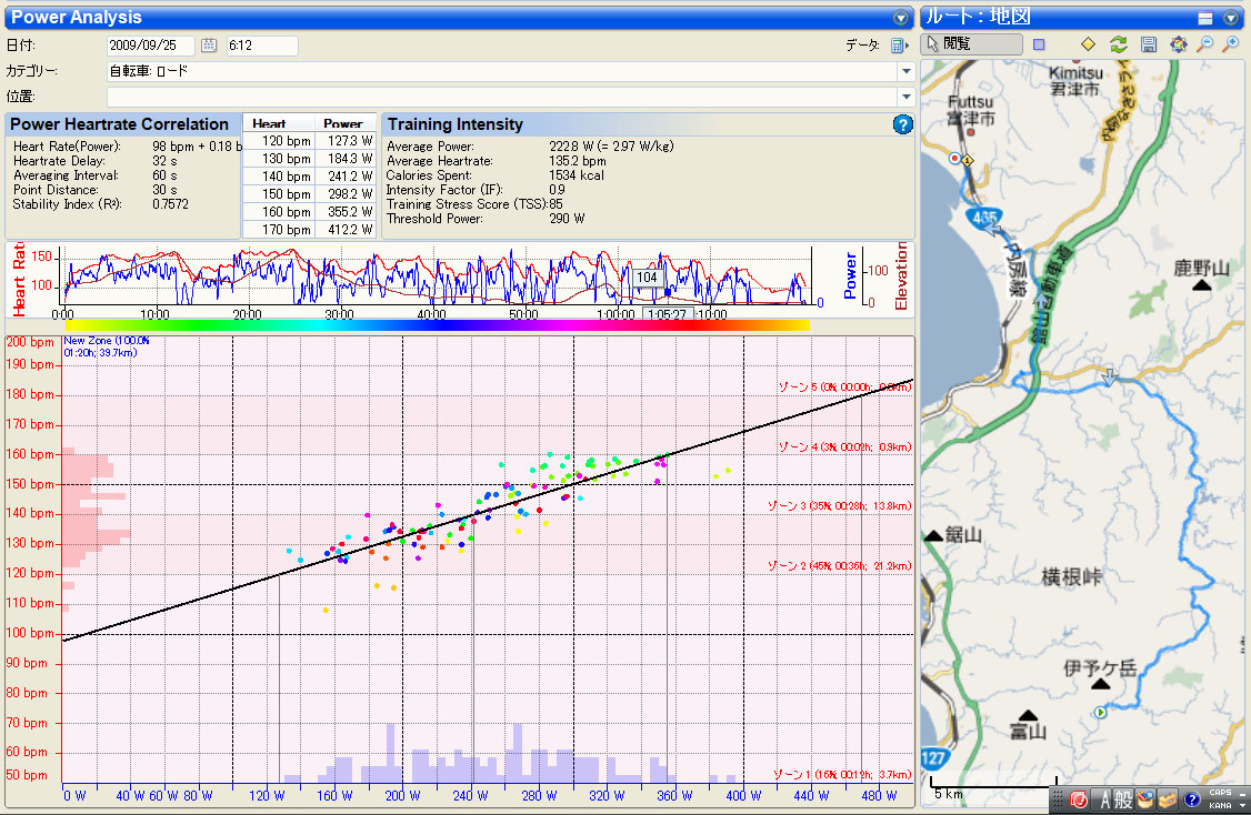 3周目ののぼりはHさんがぐいぐいひいていく。メータみたらやっぱり20km/hこえていた(笑)。