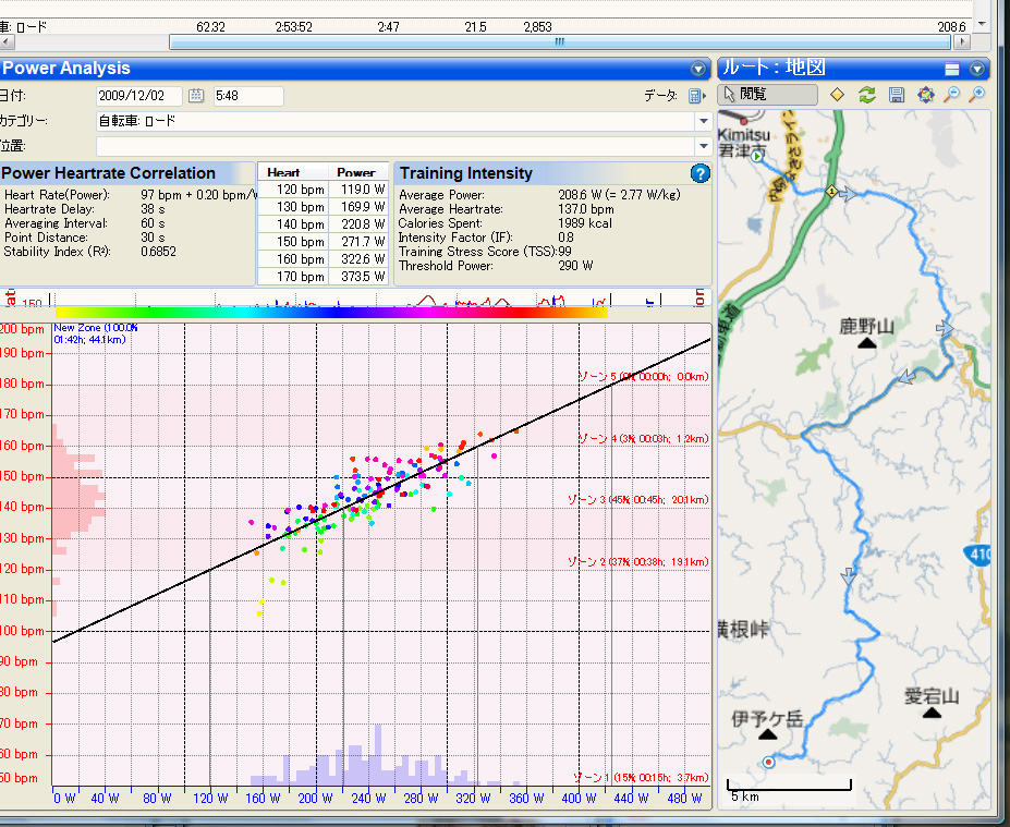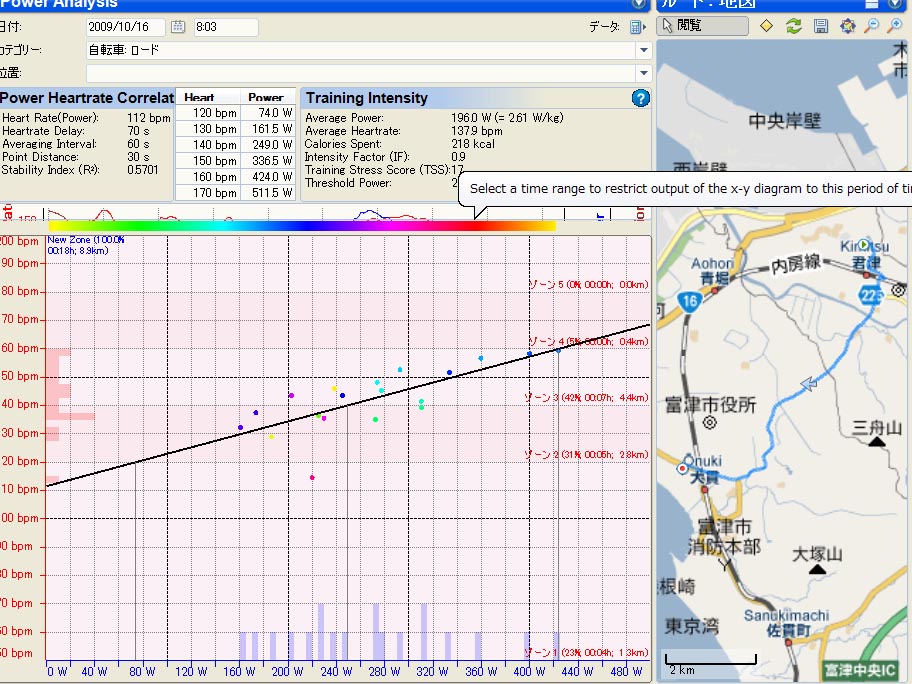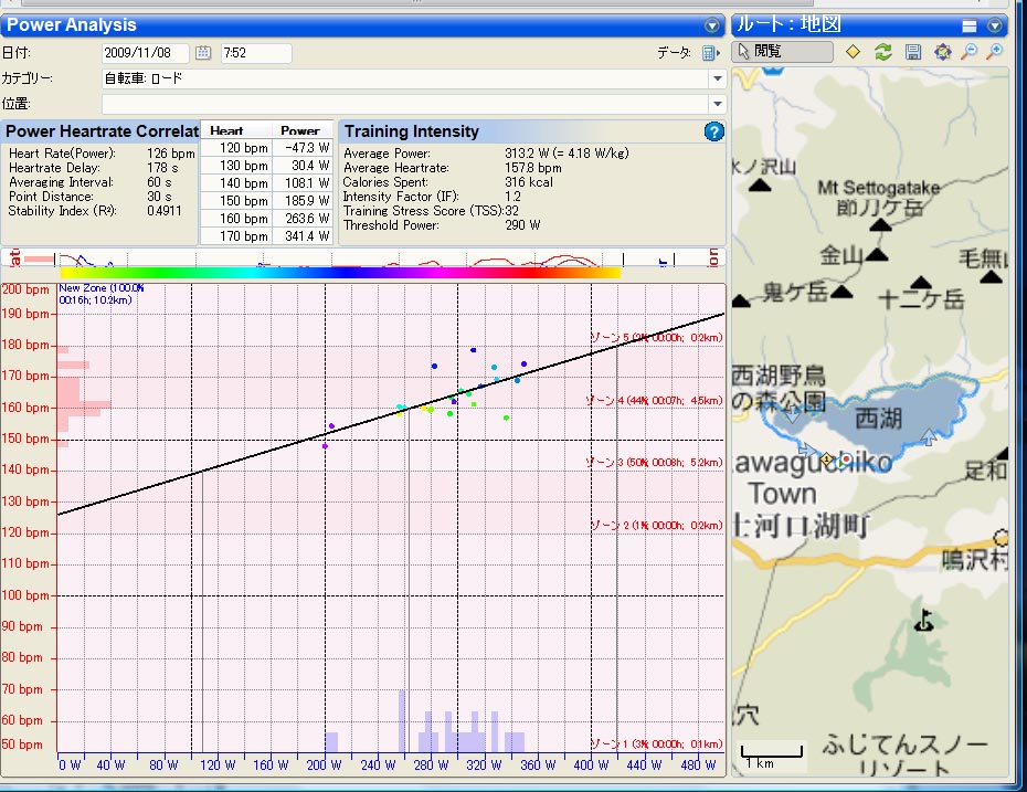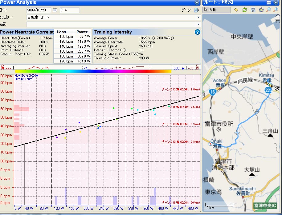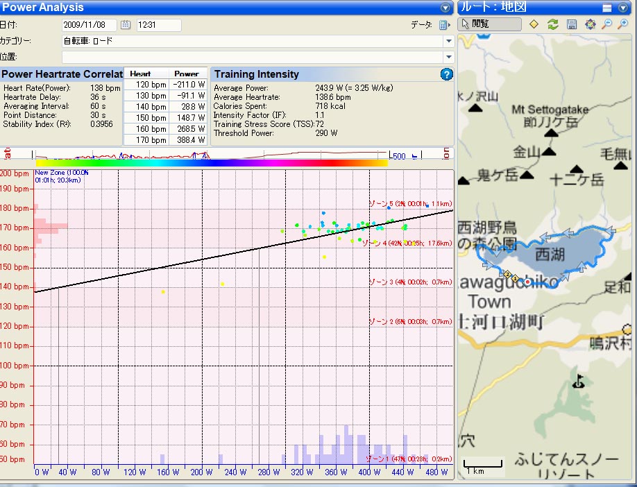 たとえば、自分の場合、HR130-140台で60分、150Wでエアロバイクやると