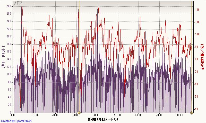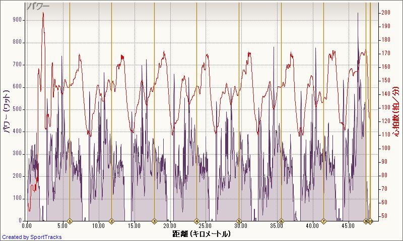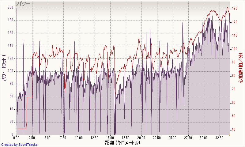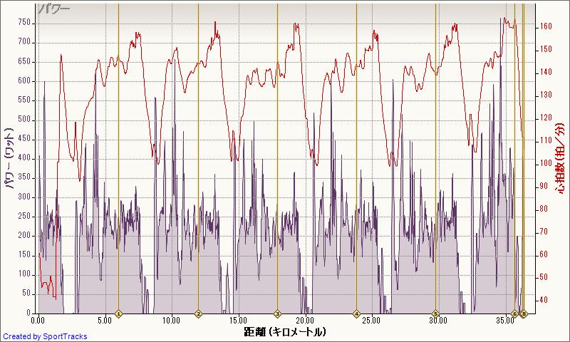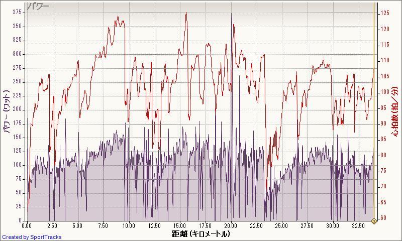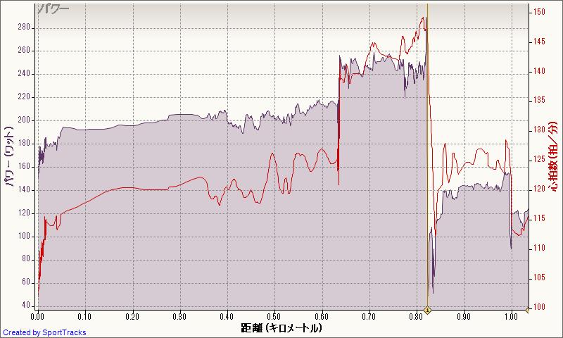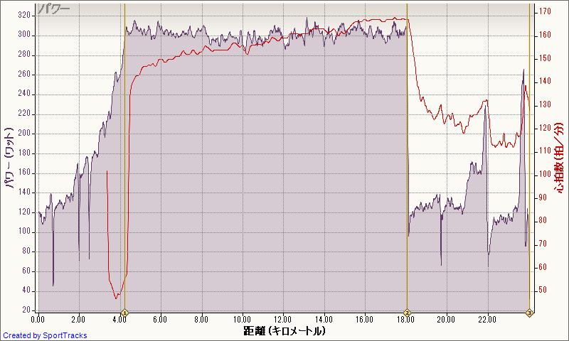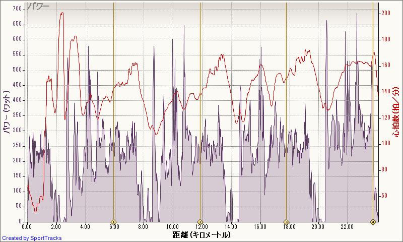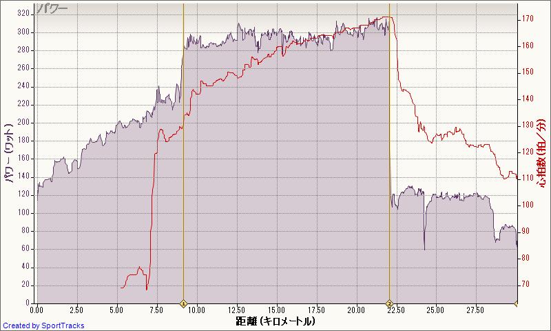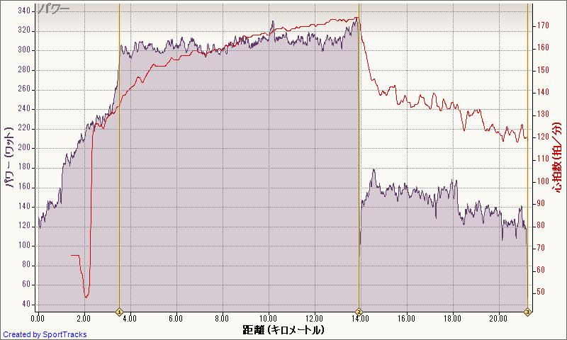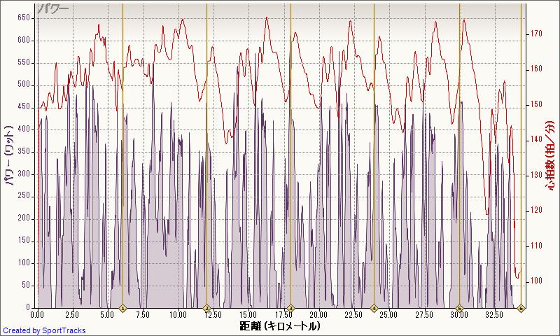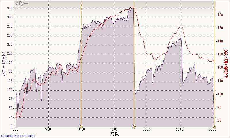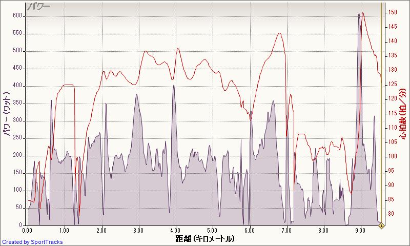 スタートして2kmまでは出力保ててたけど、そこでおわってしまったw。