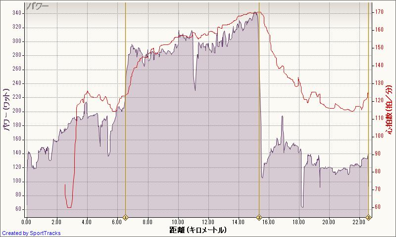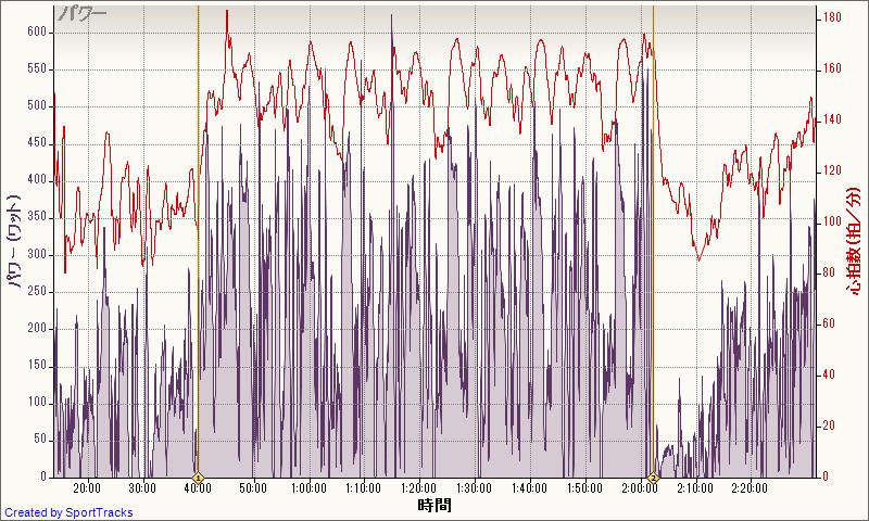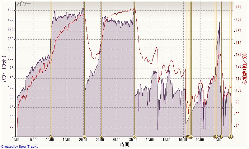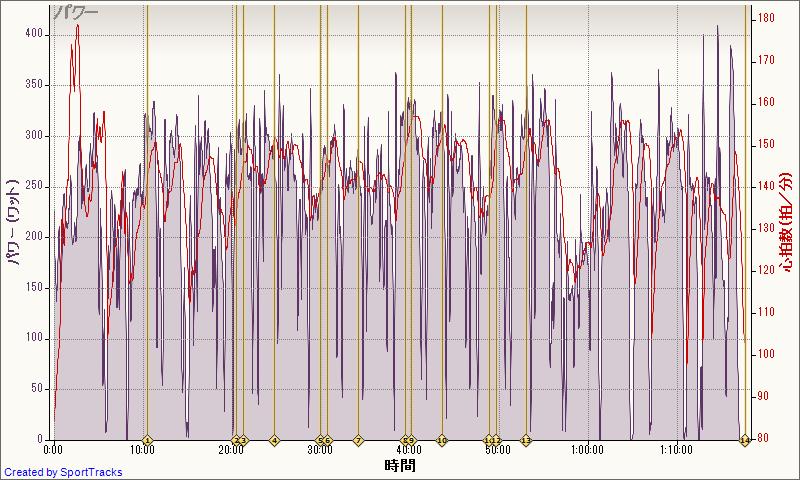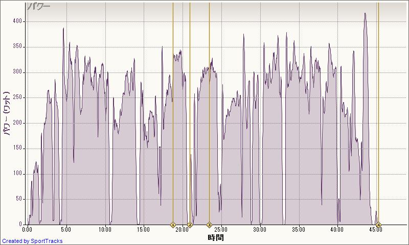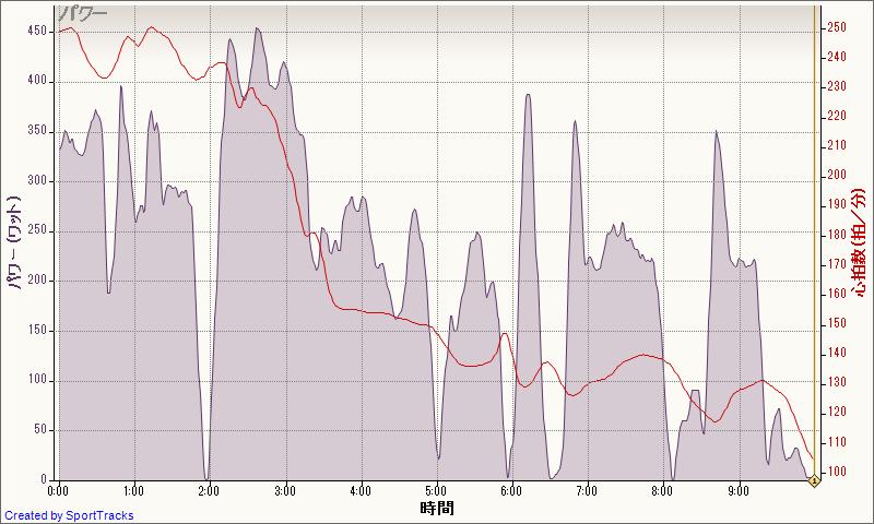 自分の最後の下宮田ののぼりは400-450W。大黒さんは270Wだって。見事に体重に比例。
