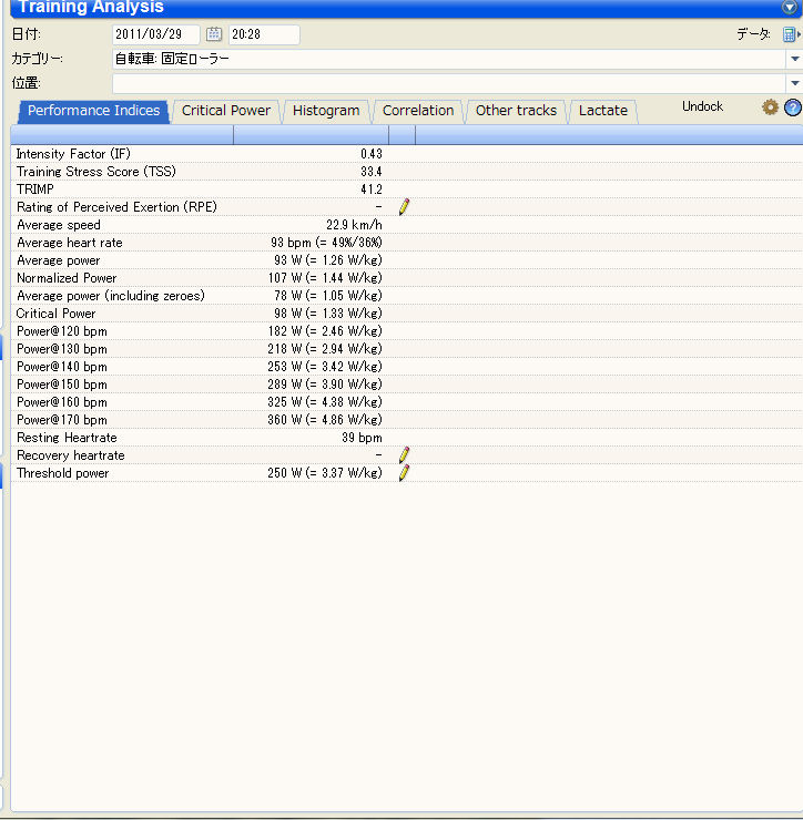 で、TSSも知りたいので、Training Anyalysisも購入した。こっちはちと高い1500円くらい。以前のバージョンより機能が増えていて、CPカーブとかもでます。