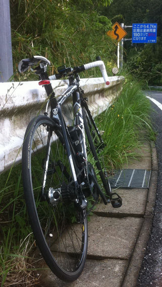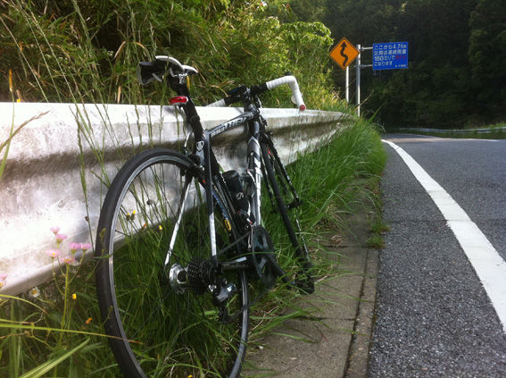でも前半は結構登る、横風もあるしDHバーもてるとこなんてほとんどなし。前輪7850CLなので横風怖いし。エアロバーの握り方をイロイロ試してみた。脇を締めて握るとハンドリングが安定していいみたい。
