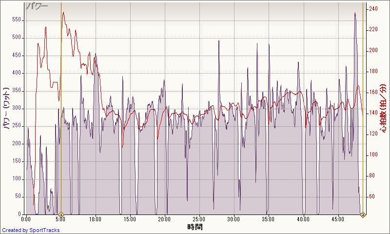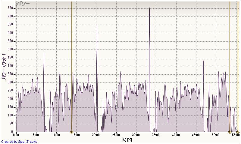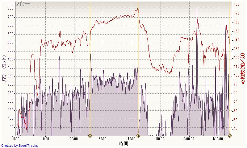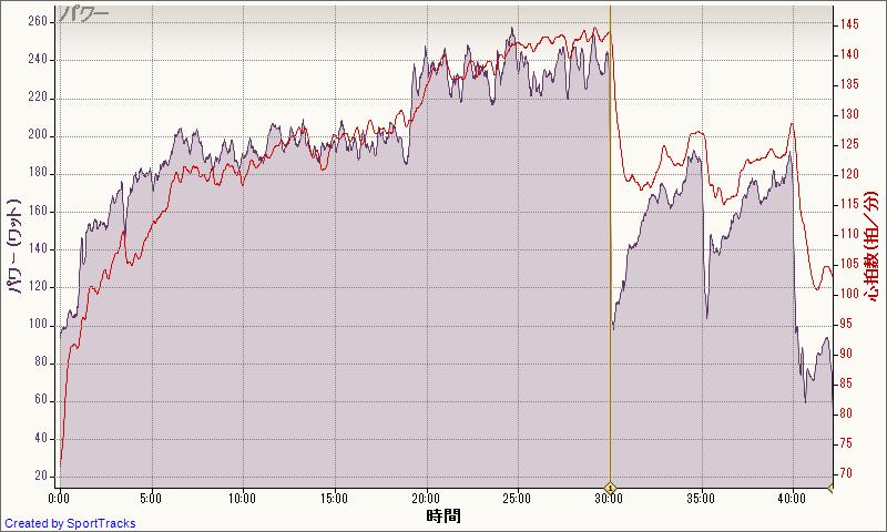 インターバル間の速度は40-44km/h、維持できるスピードをもう少しあげないと厳しい。