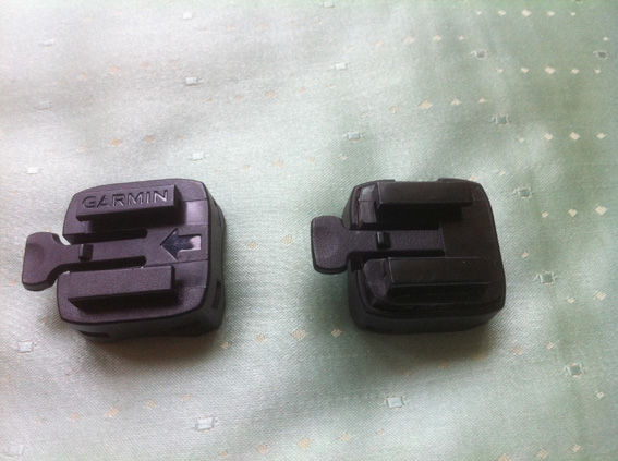 あれ?形状かわってる。一体型になったんだ。古いのは二つの部品にわかれましたが、新しいのは一体型で、表面にGARMINの文字が入ってる。