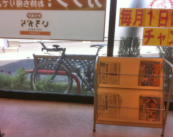 帰りにショップによったら、山岳練を終えたH尾さん、puyanさん、H中さん、I橋さん&奥様。H中さんに、HEDのバトンホイール、向き違っていることをご指摘いただきました。なるほど。知識もないのに中古で買うと使い方をあやまるんだな。ご指摘ありがとうございました。これでタイムが2秒くらい縮まるかもw。