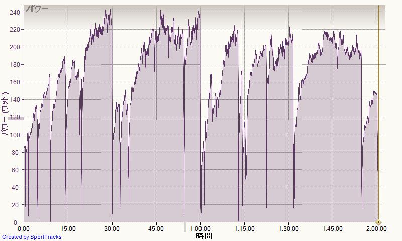 平均228W,2時間5分。33.7km/h。NP279W。