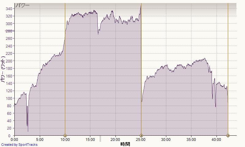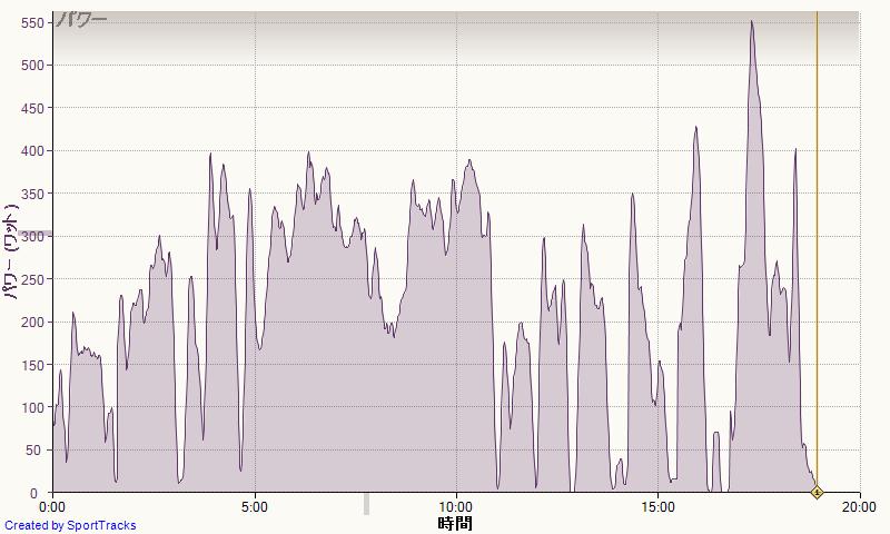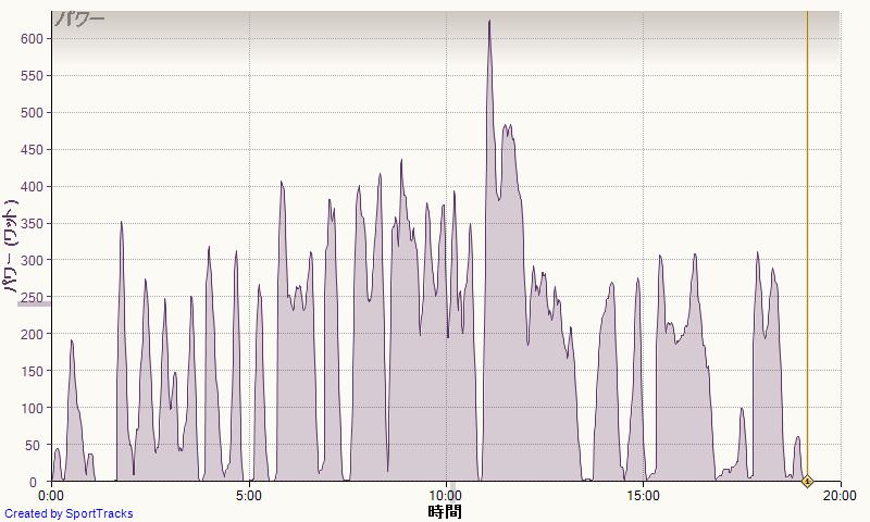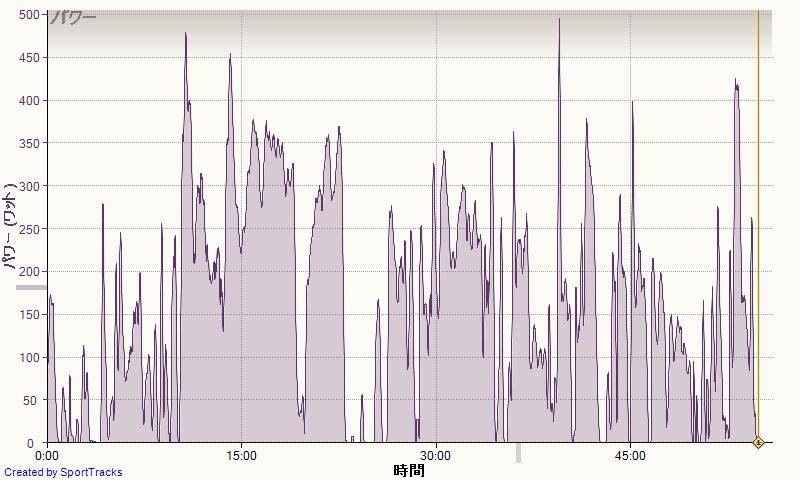 今回はその典型。二周めのダムの登りもペースあがって、またもや500W級。