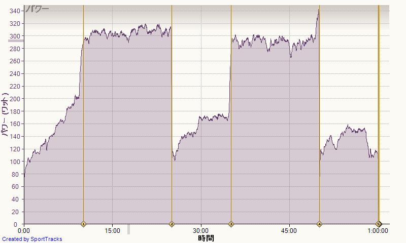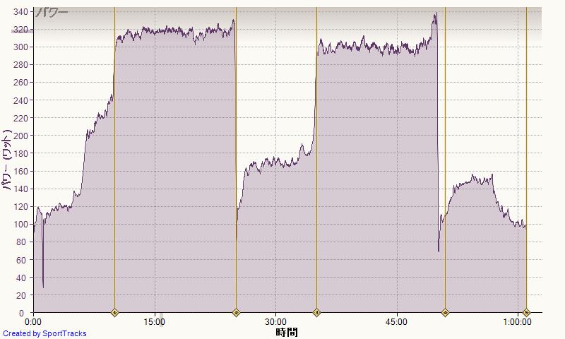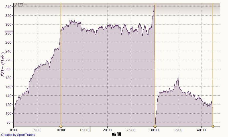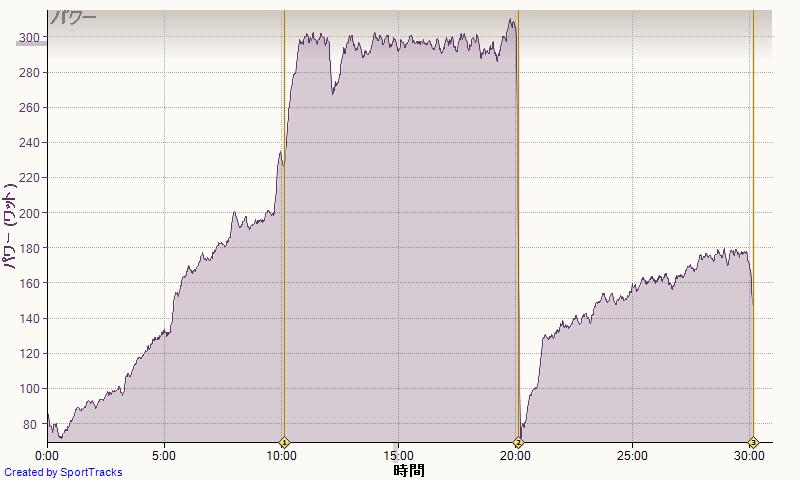 終了直後のメータでは305Wだったのでまあまあかと思ったけど。