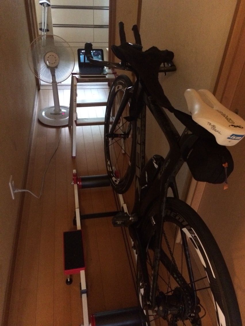 で、スタート。スタート台あり、ホルダーなし。走り始めてからクリートはめる、一発ではまらずタイムロスw。