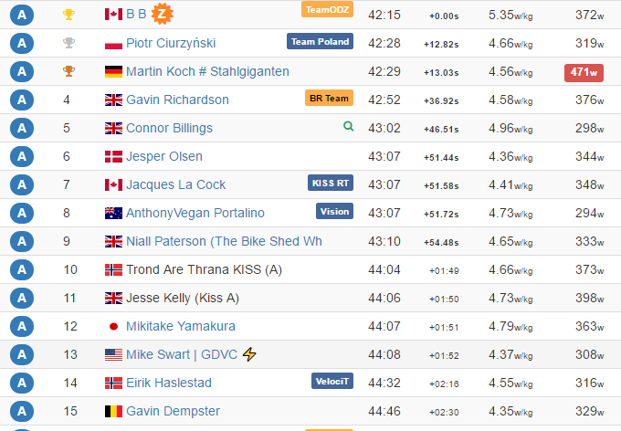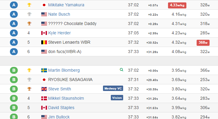 6. 3:05 325W たれたのでタイムも落ちると思ったが、横道が合流する部分でもDHバー握ったままだった分タイム良かったか?