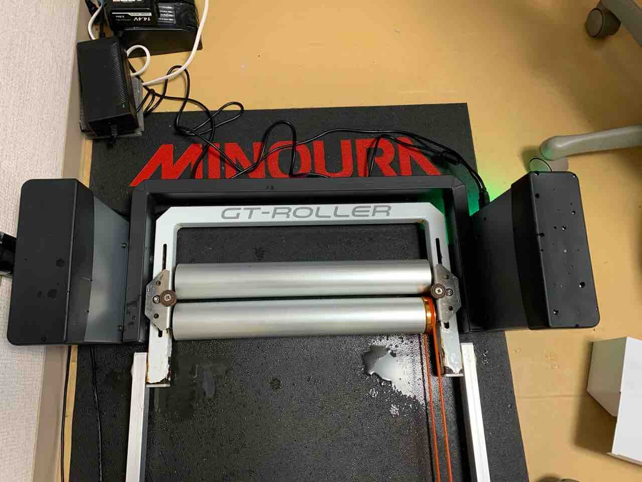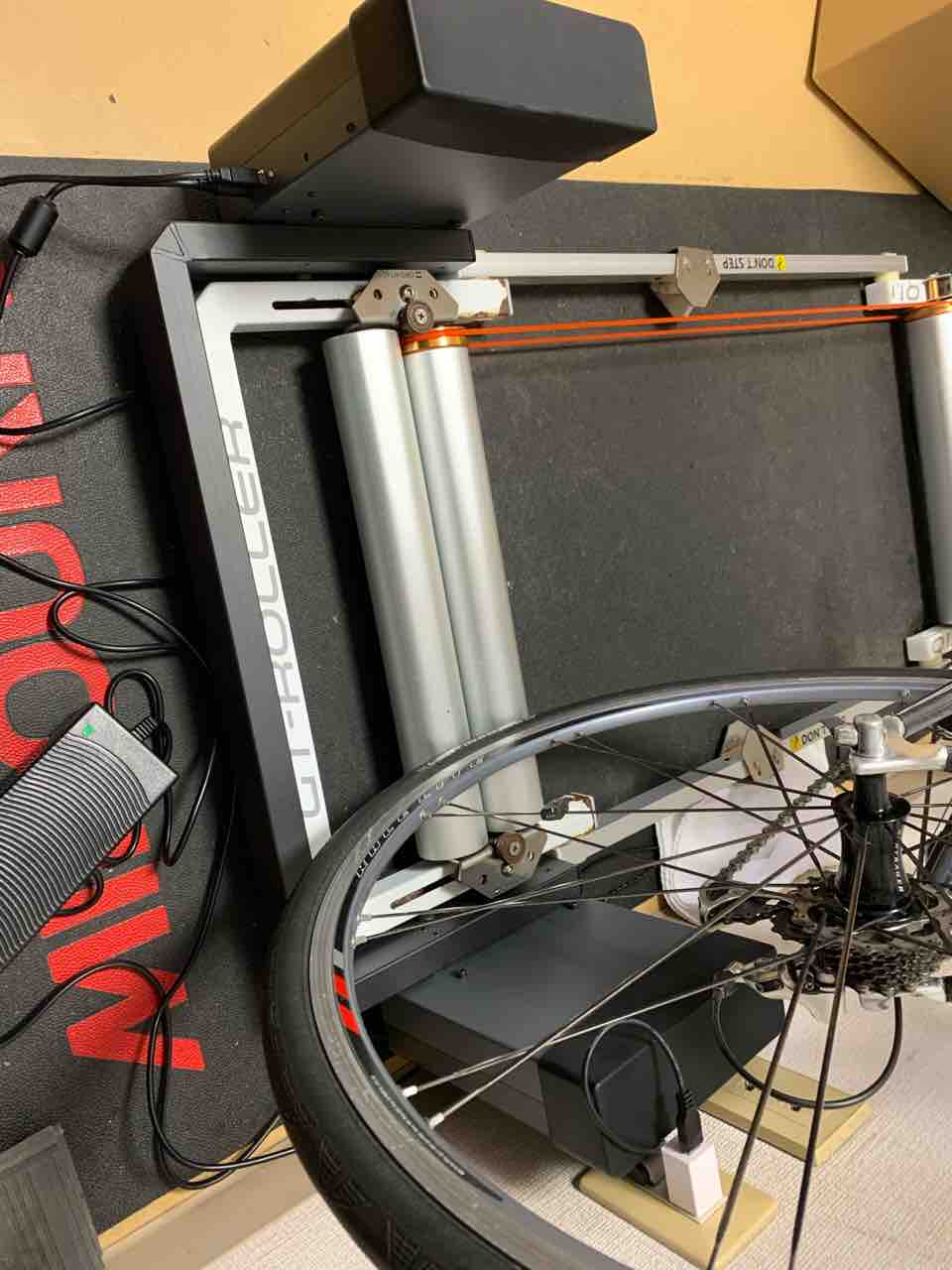 右先足元をLEDが照らすようになっていて、勾配が変わらないときはグリーン、勾配が上がるときはオレンジ、勾配が下がるときはブルーに色が変わります。部屋を暗めにしてやると、勾配が変わる目安になって良いかも。勾配に合わせて動くのは楽しい。12%(Slope-Q自体は10%まで再現)の坂ではちゃんと変速しなかったらふらついてしまった。平坦TT系ライダーとしては、ZWIFTレース的には不利になること請け合いですがw、トレーニングとしてはプラスでしょう。楽しいし。