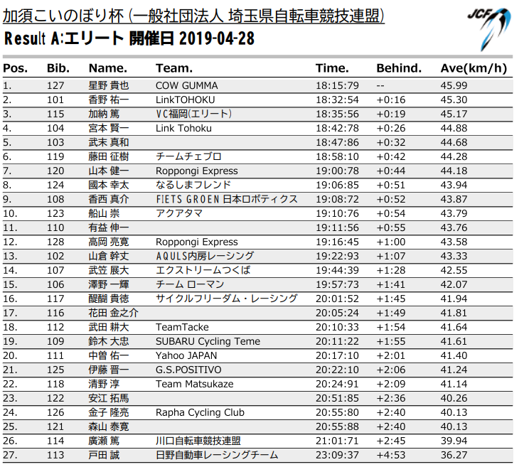 本日のコースは Richmond Rollercoaster 6 Laps 42 km。スタートして30秒くらいでおちつくか?と思ったら、ぜんぜんおちつかない。そしてリードインとウォームアップがいつまでたっても終わらないwこれはリアルレーススタート前にちぎれそうな。4.4km地点でようやくおちつく、もうここまででヘロヘロ。先頭集団は11.3km地点で36名。12km地点でDan.J単独逃げ3kmほどで吸収。20.2kmからふたたび(たぶん)Dan.J単独で飛び出す。しばらくして一人追走合流して二人逃げ、26km地点で吸収。21km地点35名、4周め33名。今日はどこでJETT Stream Attackがくるか?と、一瞬身構えた瞬間もったけど、なかった?実はコースインする前に、自分がちぎれそうになってた時に先頭で繰り広げられていたらしい、全然見えんかった、最後尾だったからw 残り10kmからDeverが飛び出す。braunが追走。集団は容認せず、速度は50km/h台へ。集団がだんだん縦にのびていく。吸収してふたたび平穏に。特定のコーナーで集団が毎周回ミスコースしてたな、そういえば。一瞬単独になって、自分がミスコースしたかと思ったw。残り6.6kmから再びDeverのアタック、最終周回突入直後に吸収。残り3.4kmから三度Dever、つえー。これはほどなく吸収。最後は大集団スプリントでズブズ。(10位だったから最後のブ、はなし)