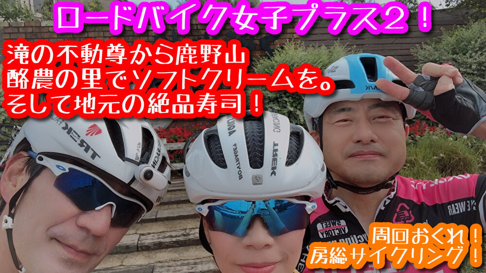 行ったことのなかった滝の不動尊、練習中のチームメンバーと遭遇、鹿野山でトムズサイクリングさんに遭遇、偶然やっていたみんなみの里のおばけかぼちゃ大会をみて、酪農の里で日本一(当社調査による)のソフトクリームを食べ、平群クラブハウスでまったり。腹が減ったので千倉・大徳屋に寿司を食いに行って、ビーツを買いに行ったら売ってなかったけど、地元産バナナを見て、勘で立ち寄った小さな店でビーツをゲット。いきあたりばったりだけど良い一日。