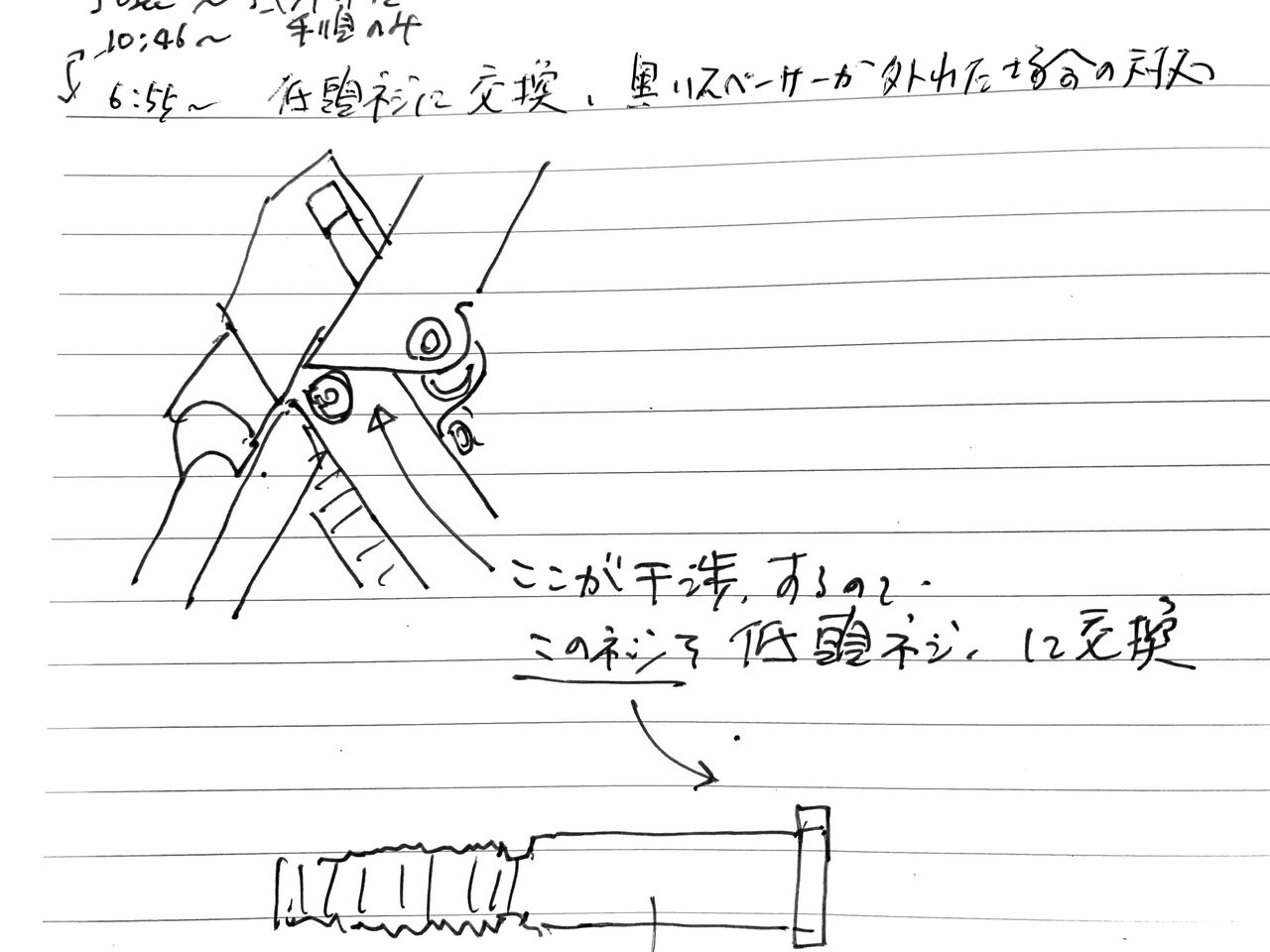 ネジ交換の際には、なるべく他の部品をずらさずに、そのままネジだけ交換するのが良いです。