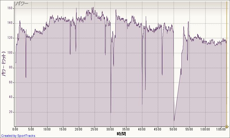 水曜、アクティブリカバリー。パワークランクで60分。130W。