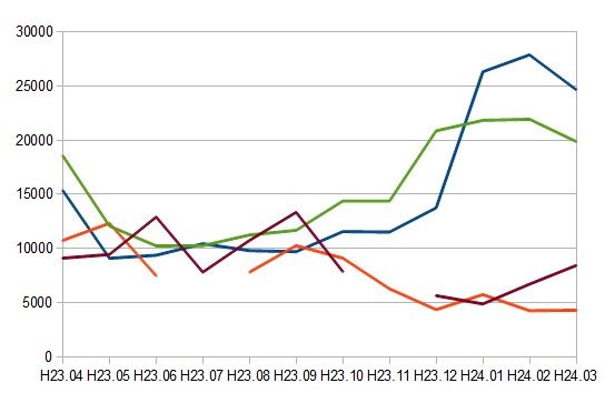いわゆる、コンテンツ系が全滅ですな。